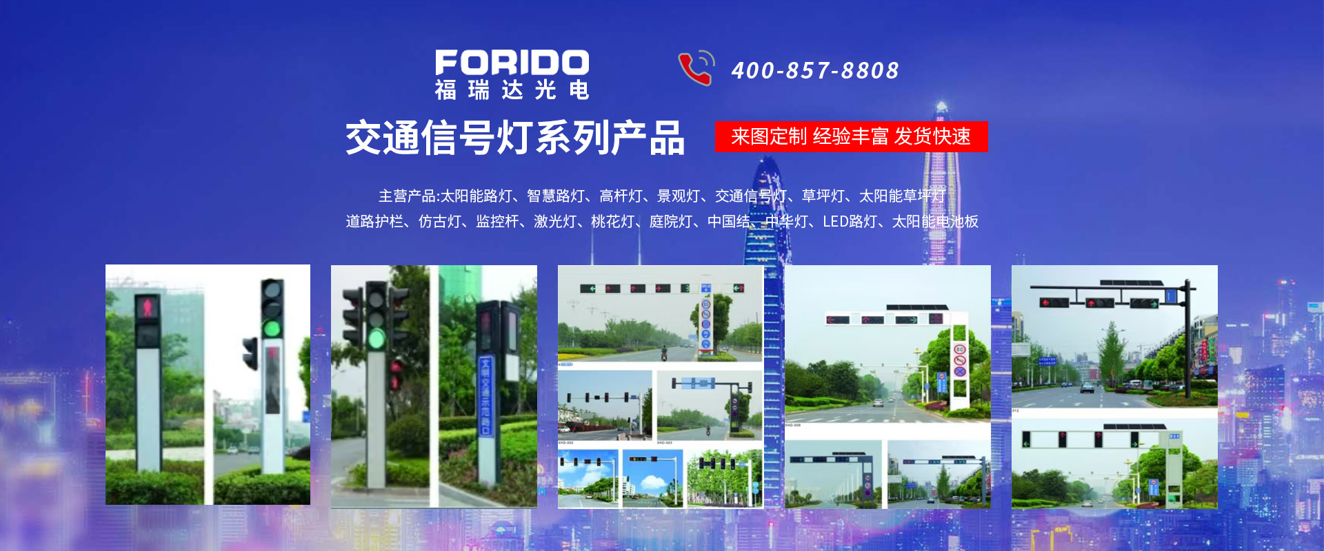 揚(yáng)州福瑞達(dá)光電科技有限公司位于淮左名都?xì)v史文化名城、中國(guó)路燈制造基地?fù)P州市北郊菱塘工業(yè)園,公司占地面積76000平方米,注冊(cè)資金10518萬元,擁有高級(jí)技術(shù)嫻熟的員工280多人,擁有大型折彎?rùn)C(jī)、激光切割、數(shù)控注塑機(jī)、壓鑄機(jī)、自動(dòng)埋弧焊、氣焊、彩色粉末靜電噴塑等大型自動(dòng)化設(shè)備,我公司是一家集設(shè)計(jì)、研發(fā)、生產(chǎn)、銷售、施工安裝服務(wù)為一體的戶外交通照明產(chǎn)品制造商,主要生產(chǎn)智慧路燈、太陽能路燈、LED路燈、高桿燈、景觀燈、交通信號(hào)燈、交通標(biāo)志牌、通信鐵塔、路跨鋼結(jié)構(gòu)、公交站臺(tái)、太陽能光伏組件、景點(diǎn)亮化、樓宇亮化工程的設(shè)計(jì)施工等。公司秉承開拓創(chuàng)新、銳意進(jìn)取、精誠(chéng)服務(wù)的企業(yè)精神,堅(jiān)持以“誠(chéng)信為本、技術(shù)為先、服務(wù)是金”的合作理念,我們憑借先進(jìn)的制造工藝、優(yōu)質(zhì)的產(chǎn)品質(zhì)量、合理的市場(chǎng)價(jià)格和完善的售后服務(wù)贏得了廣闊的市場(chǎng)和客戶的信賴。  我公司已通過ISO9001質(zhì)量體系認(rèn)證、ISO14001環(huán)境管理體認(rèn)證,CQC產(chǎn)品認(rèn)證,中國(guó)節(jié)能產(chǎn)品認(rèn)證,通過“CCC”強(qiáng)制性產(chǎn)品認(rèn)證,具有市政總承包,照明,交安,設(shè)計(jì)等資質(zhì)···